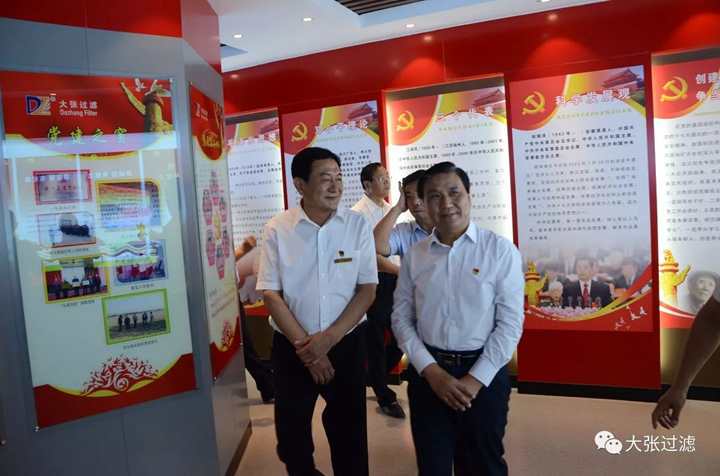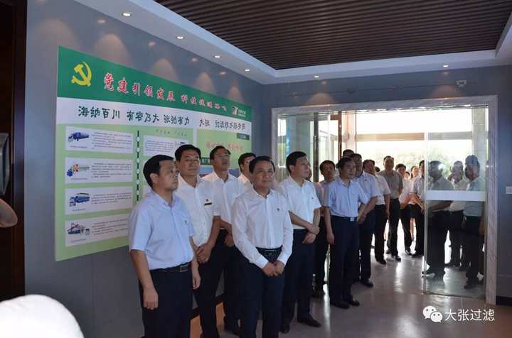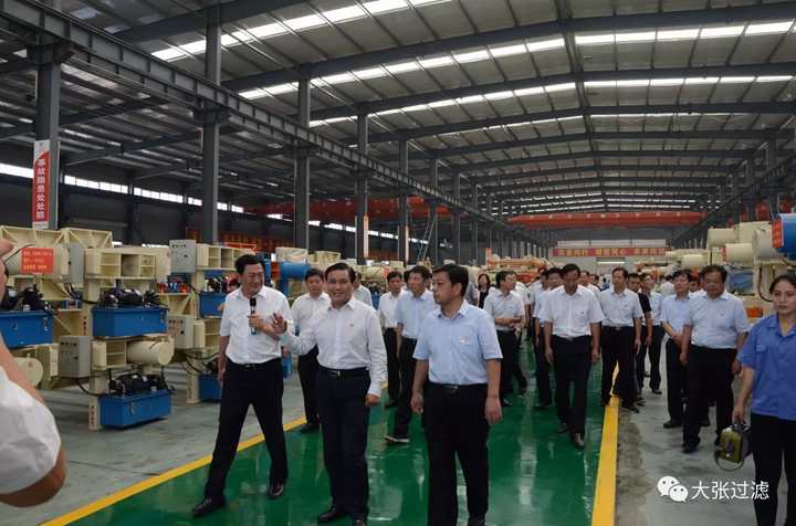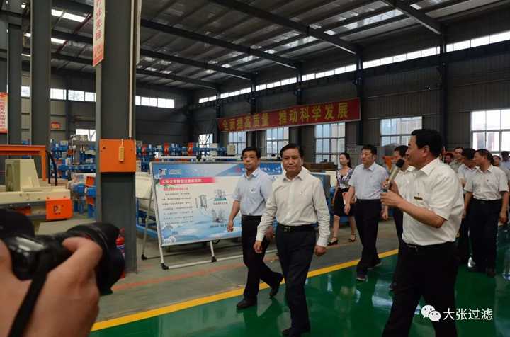 隨后,武國定書記一行來到公司的智能化生產車間,看到了公司的“智能自動化濾板混合配料輸送生產線”,“智能全自動廂式水沖洗壓濾機”,“智能集成式自動隔膜一體壓濾機”和“智能自動帯式壓榨過濾機系列”以及“精密過濾器系列”的高端產品,武國定書記對大張過濾通過黨建 企業發展,用科技促進企業騰飛的做法給予高度評價。