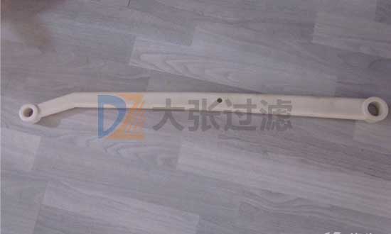 濾布曲張系統可使壓濾機在工作時能夠改變濾布傾斜角度,成倒V字形,同時持在濾布上的彈簧因伸縮而產生抖動, 使濾餅自動脫落。曲張桿采用增強聚丙烯材質,重量輕、耐腐蝕,具有動作靈活可靠、維護 方便等特點。