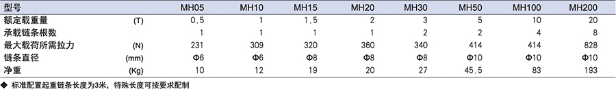 ● 選用高品質剎車,耐磨損,抗腐蝕的高強度鏈條及吊鉤。
