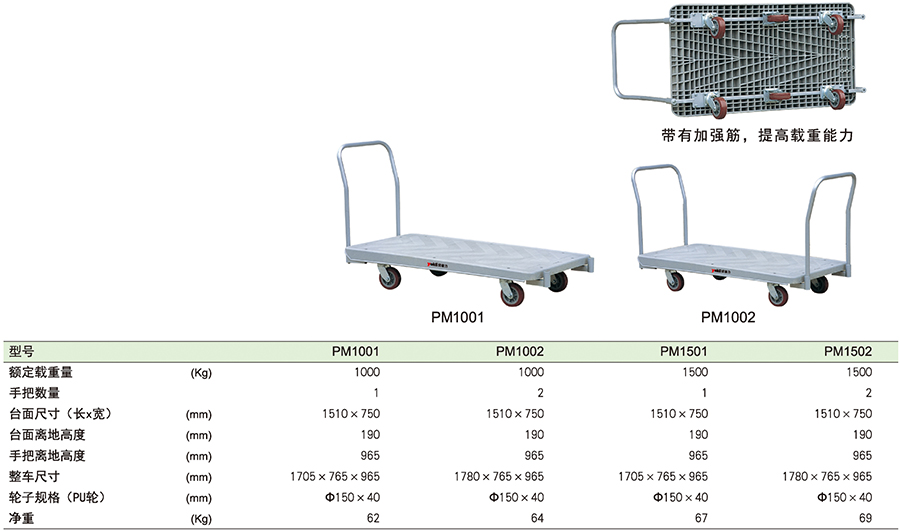 ● 1500Kg推車(chē)帶有兩個(gè)直輪,四個(gè)萬(wàn)向輪。