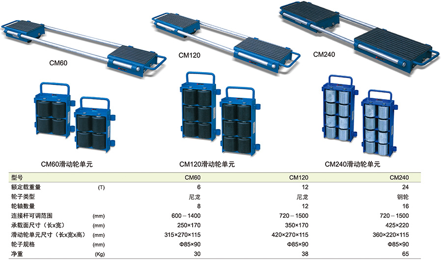 ● 每個(gè)CM系列滑動(dòng)輪由兩個(gè)滑動(dòng)輪單元及聯(lián)接桿組成。